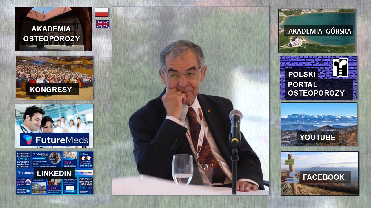 Akademia Osteoporozy Kongresy FutureMeds LinkedIn Akademia Górska Polski Portal Otseoporozy YouTube Facebook Edward Czerwinski Polish English